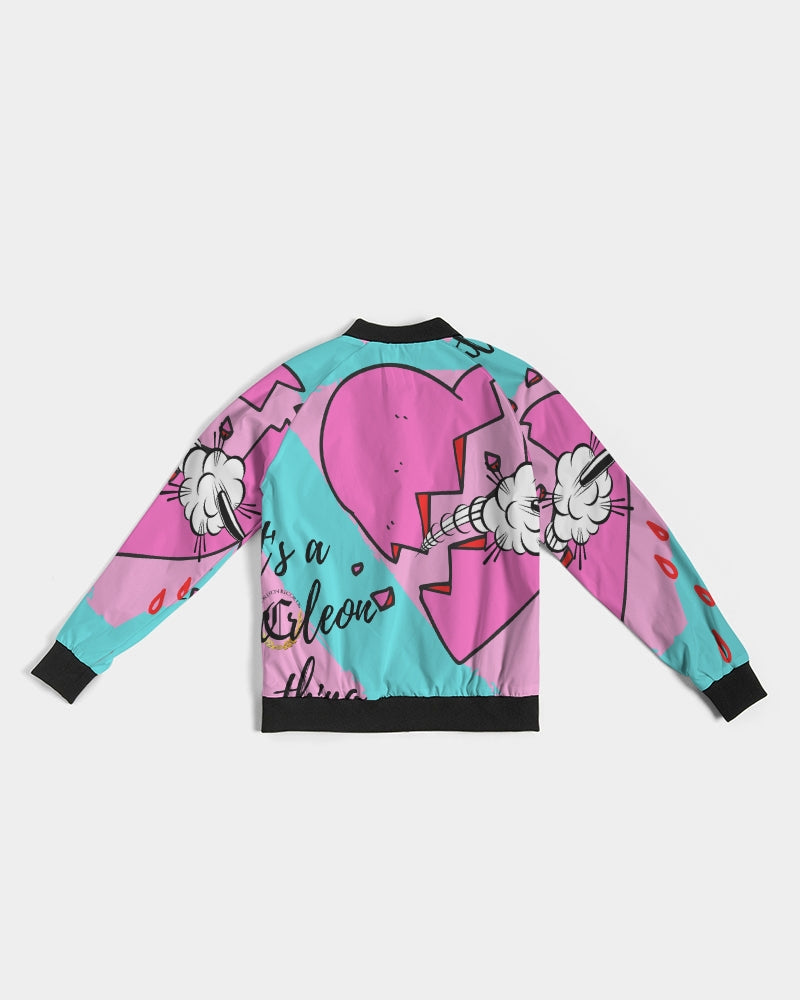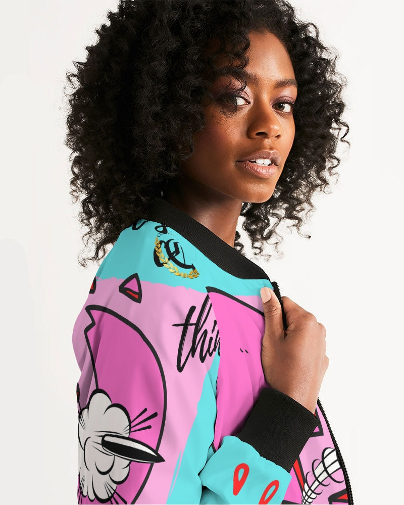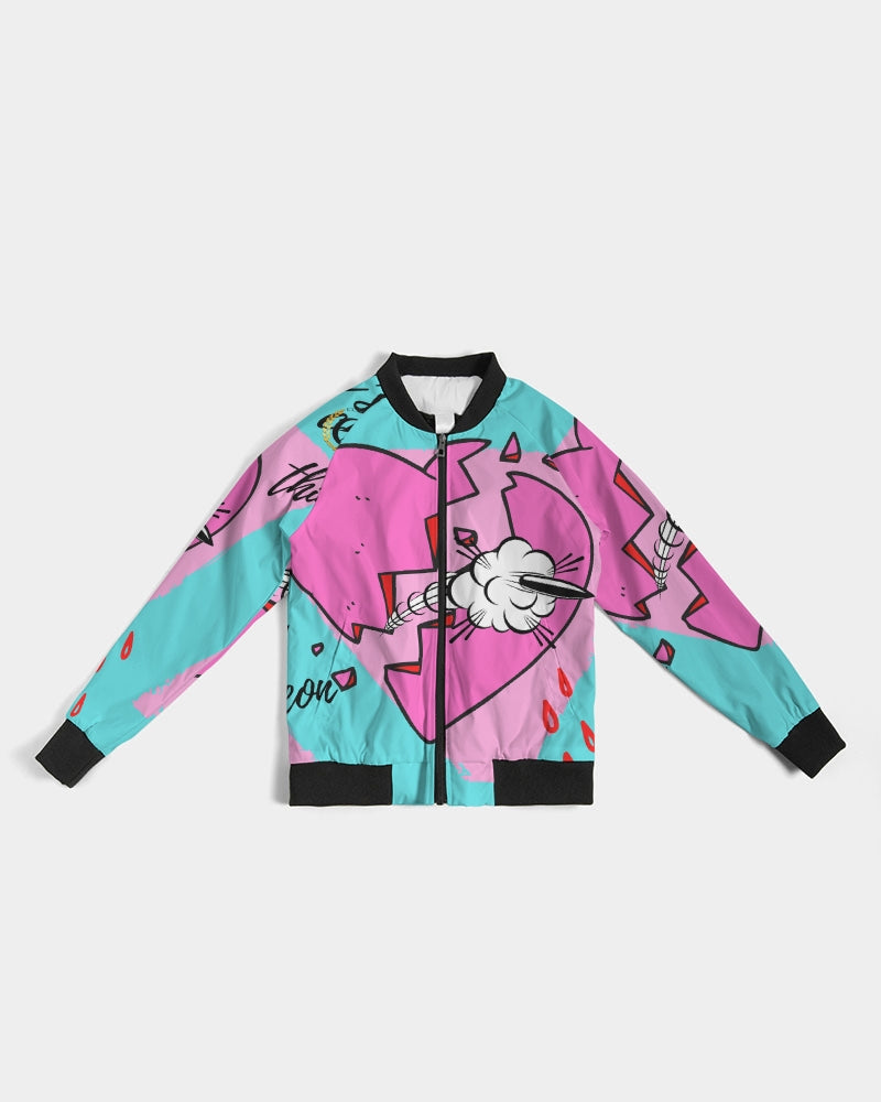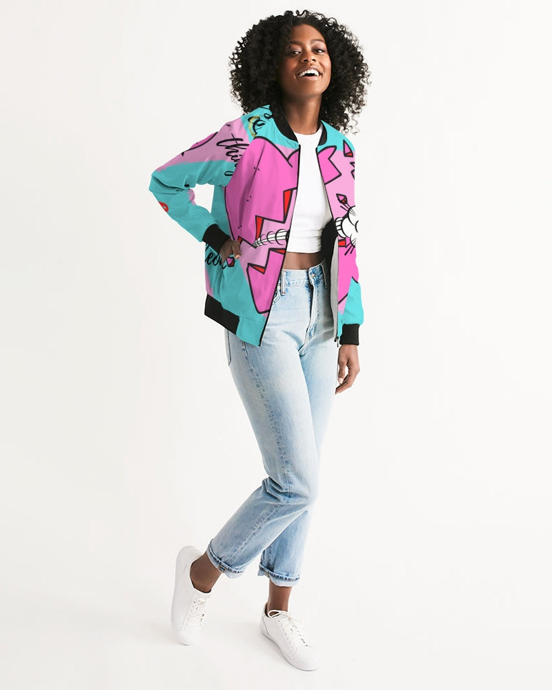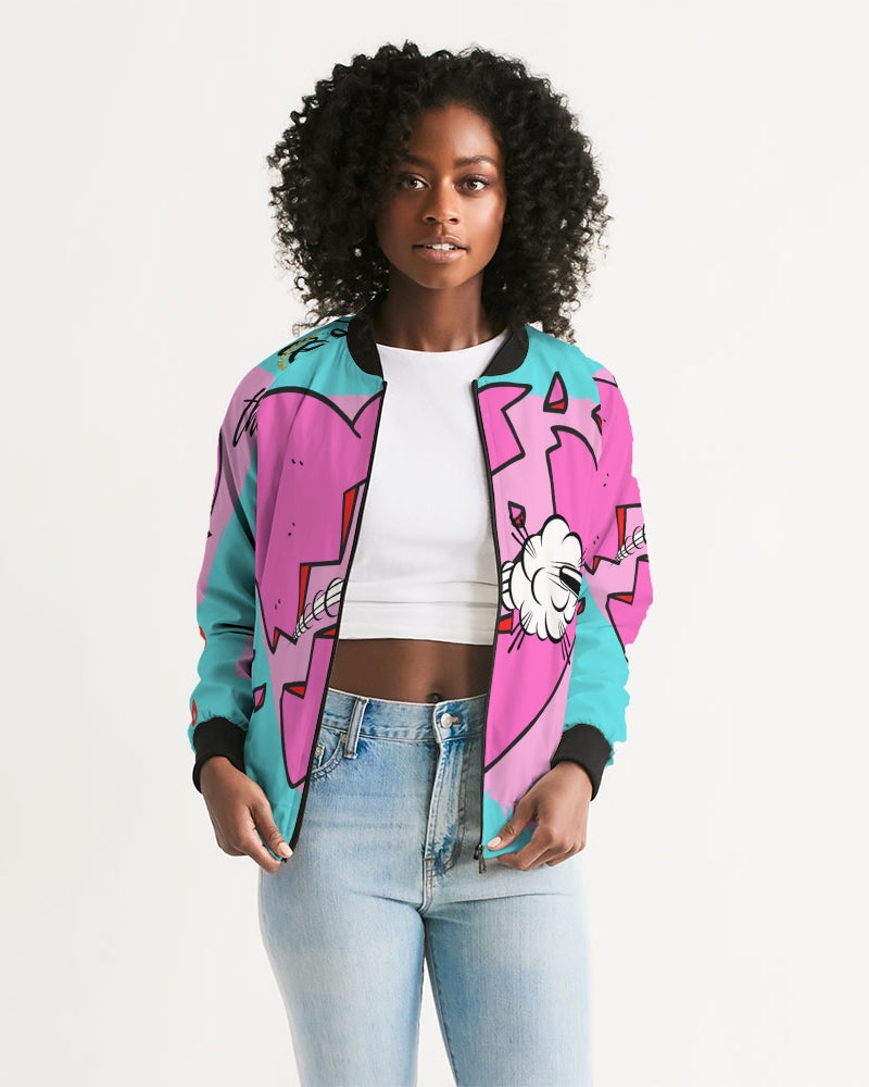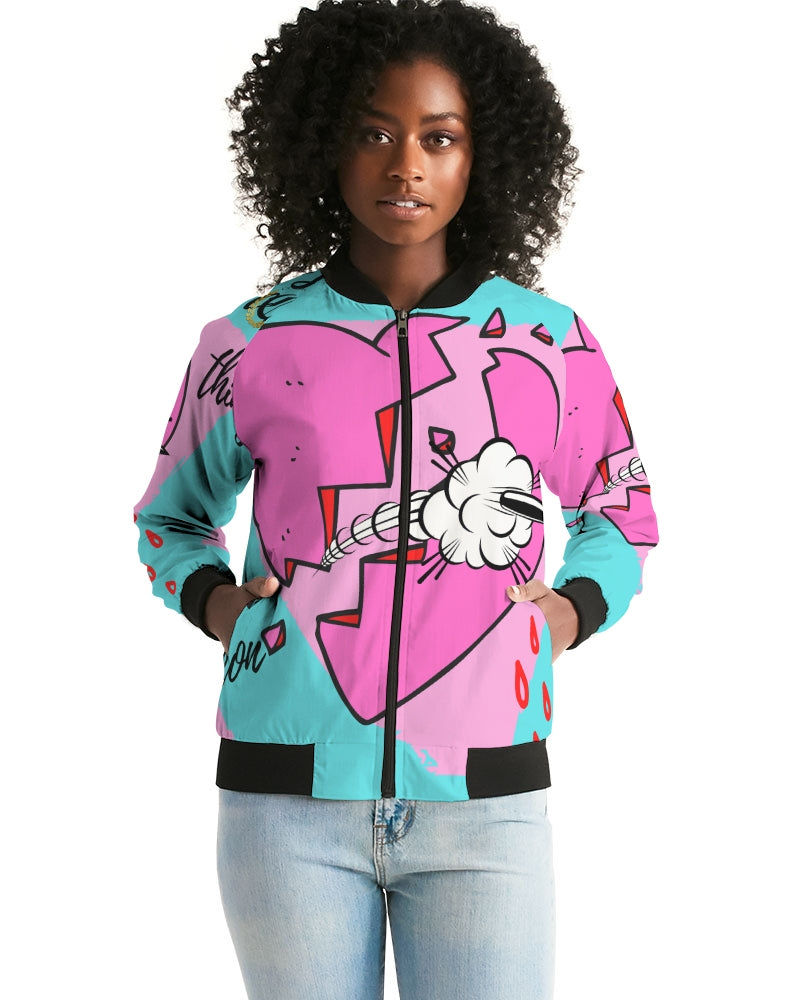 About The ArtFearless (9) pink hearts Product DetailsHand-cut and crafted with care, your custom designed Women's Bomber Jacket will set off any look! Its lightweight, airy fabric is lined with the perfect amount of insulation for the chillier months making this a great year round go-to.