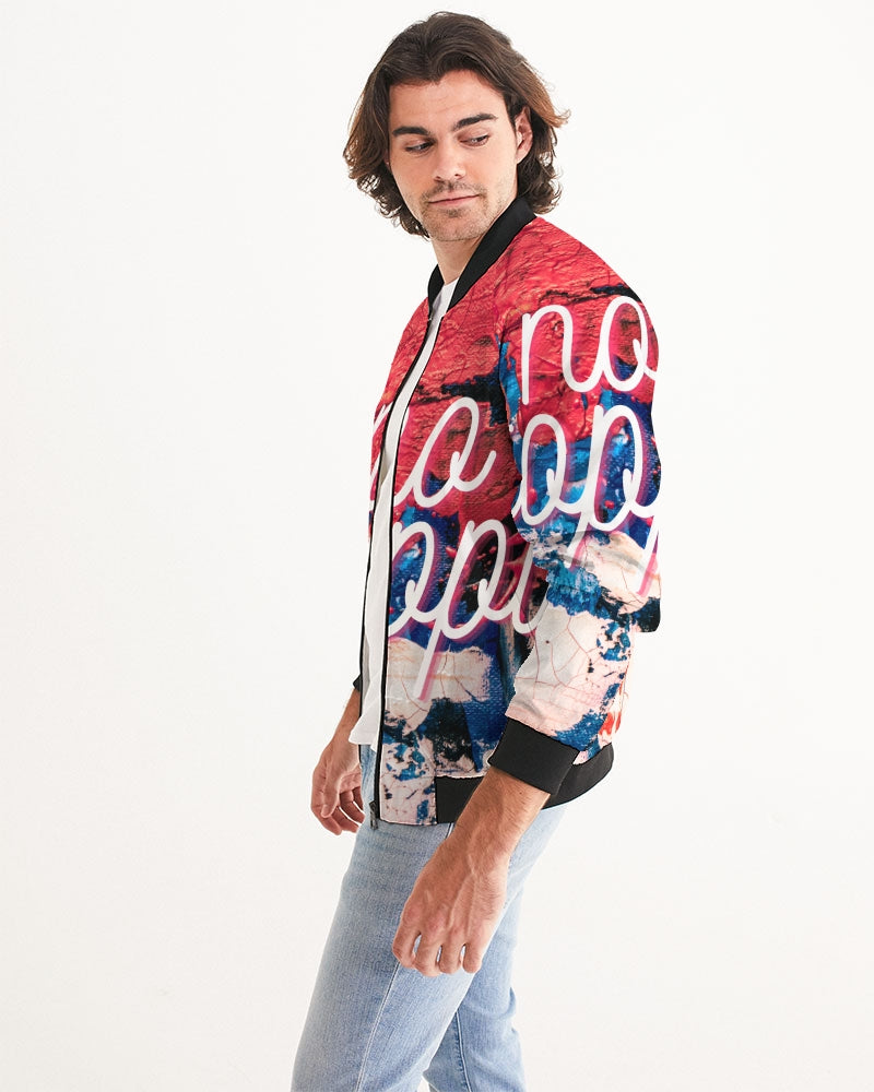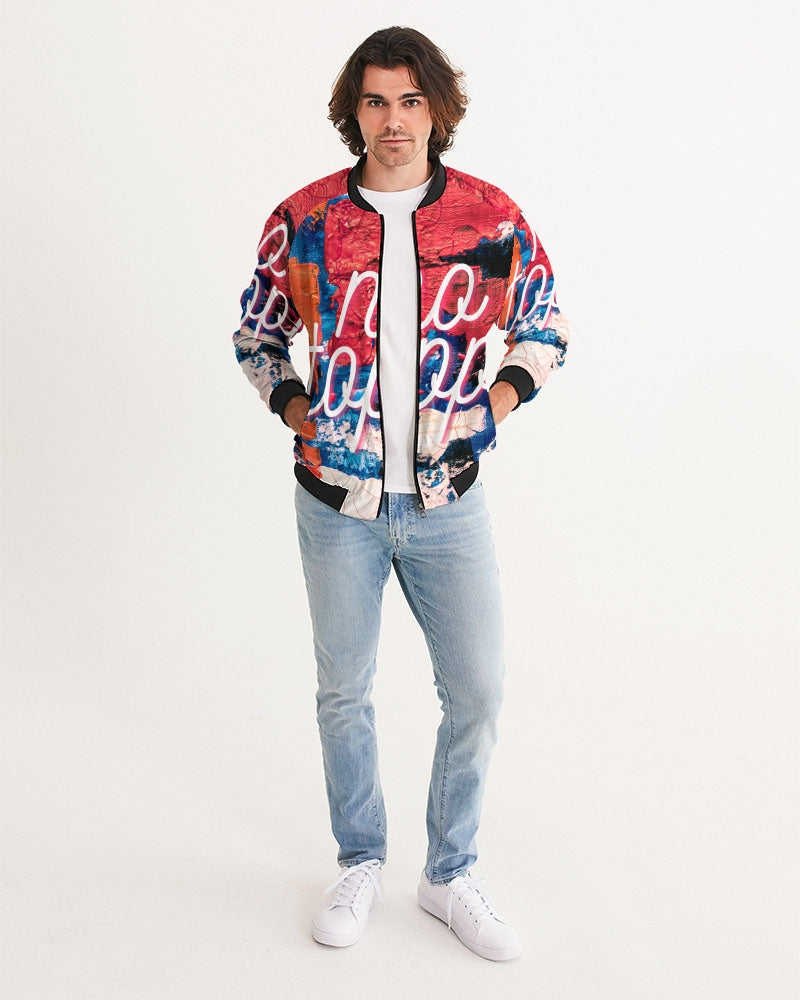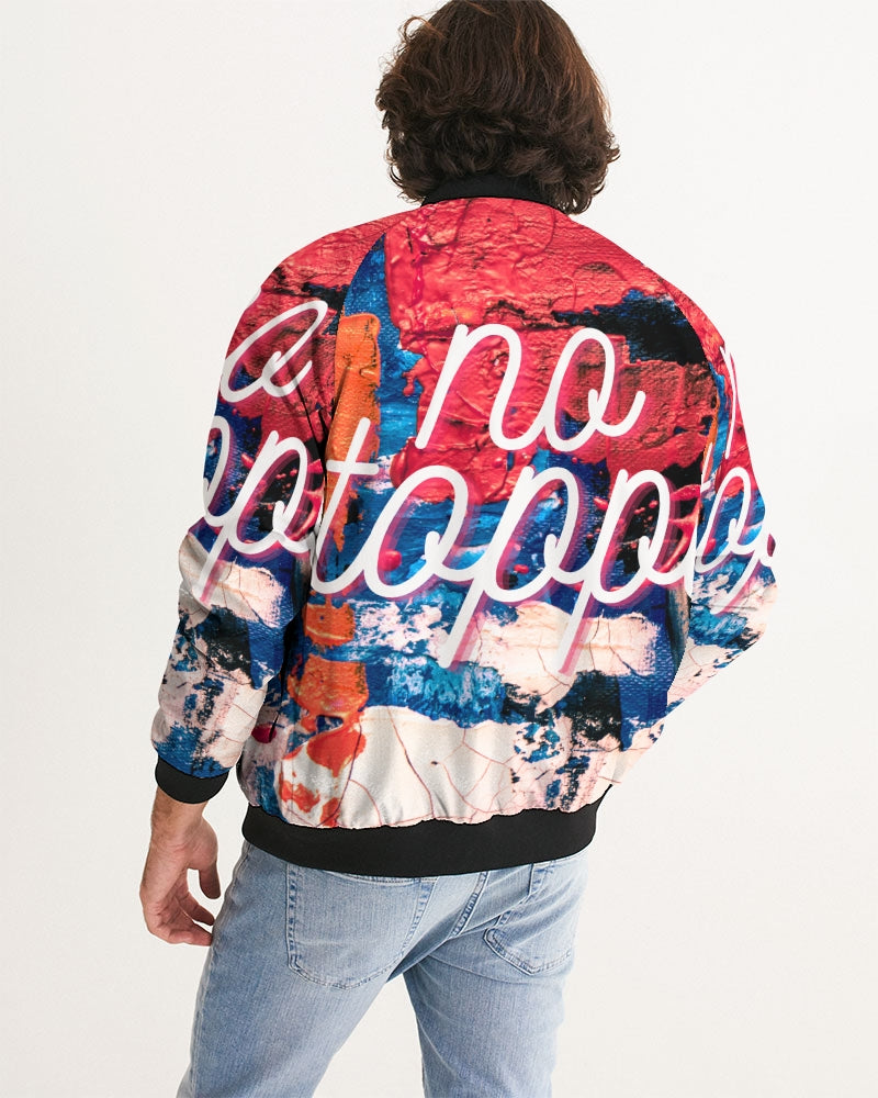 About The Artno stoppin cover NO STOPPIN Product DetailsHand-cut and crafted with care, your custom designed Men's Bomber Jacket is great for casual or sportswear. Its lightweight, airy fabric is lined with the perfect amount of insulation for the chillier months making this a great year round go-to.