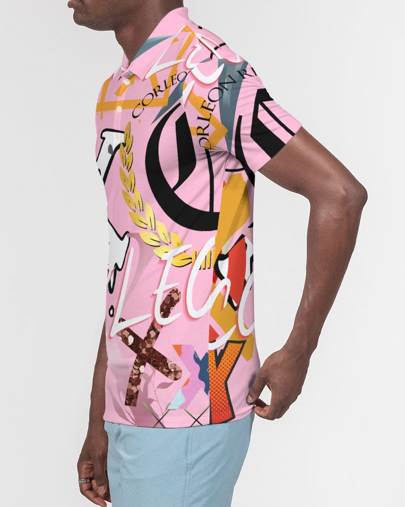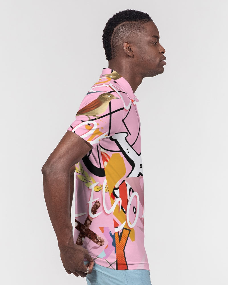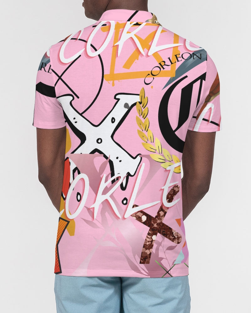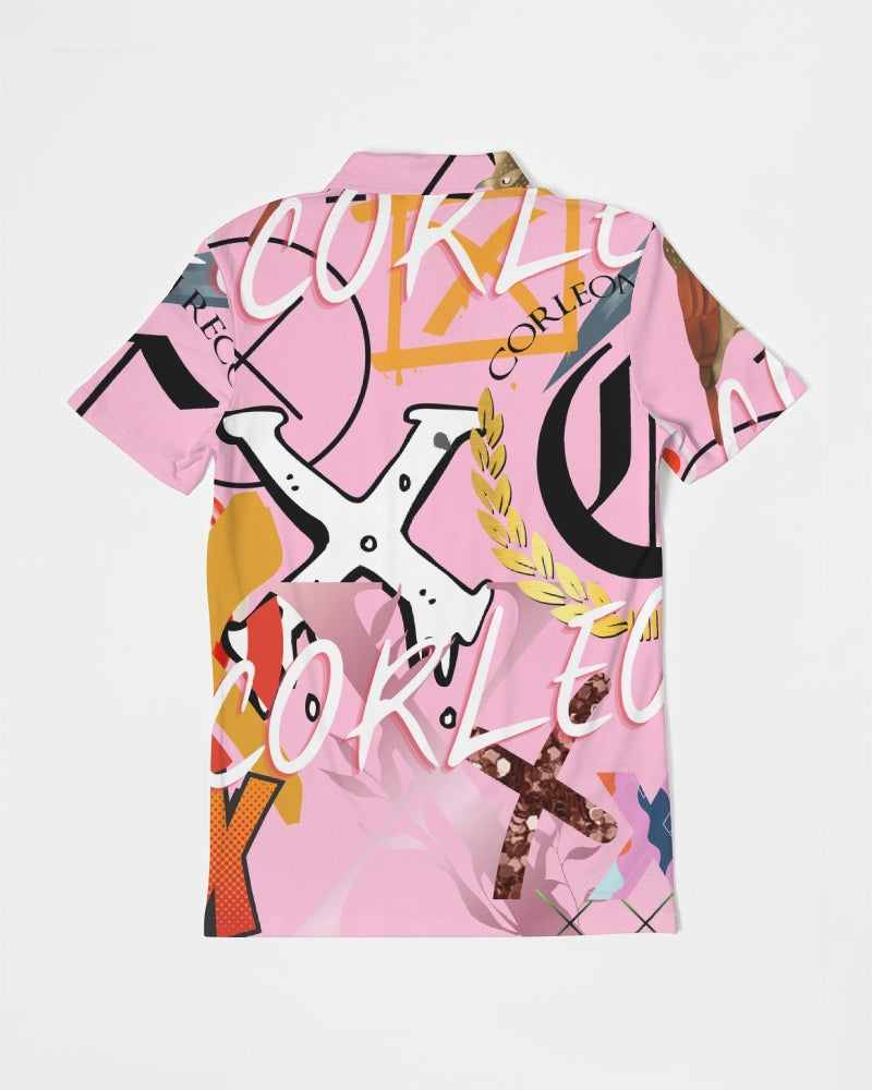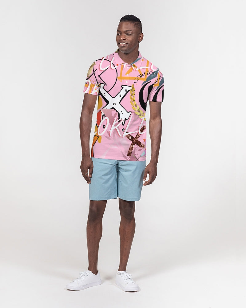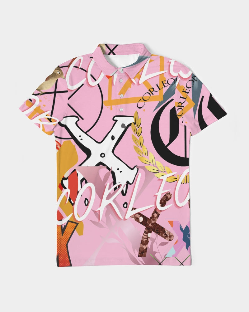 PINK_ WHITE Men's Slim Fit Short Sleeve Polo